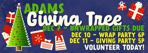 Thur, Dec 11 | 4-7P | Giving Party | Adams Cafeteria